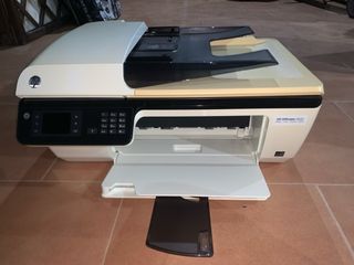 Impresora multifunción HP Officejet 2620. - Color beige y blanco. - Funciones de impresión, escaneo y copia. *No me permite imprimir ni fotocopiar por un error repentino de configuración con los cartuchos compatibles. No he comprobado si con los originales realizaría ambas funciones.