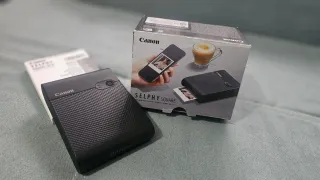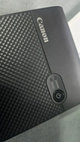 Impresora fotográfica portátil Canon Selphy Square QX10. Utilizada en 3 impresiones. Completamente nueva. - Diseño compacto y elegante. - Acabado texturizado en la tapa. - Botón de encendido visible en la parte superior.