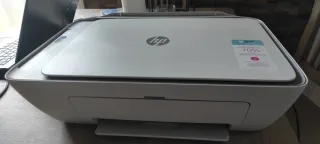Impresora multifunción HP DeskJet 2600 en color blanco. - Escanea, copia e imprime. - Bandeja de entrada para papel. - Panel de control con pantalla. - No se sabe el estado de la tinta, probablemente se necesite nuevos cartuchos - Se vende por muy poco uso -Funciona perfectamente solo está deteriorada por el exterior debido al poco uso