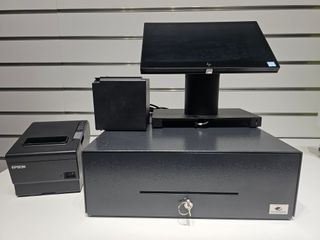 Sistema de punto de venta completo con pantalla táctil, cajón portamonedas e impresora. - Pantalla táctil. - Cajón portamonedas. - Impresora.