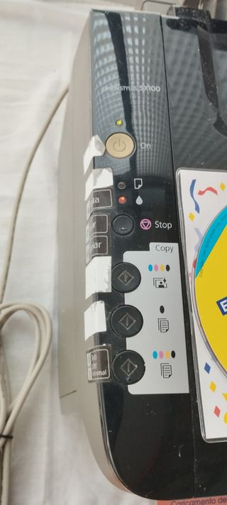 Impresora Epson Stylus SX100 en buen estado. Incluye manuales e instrucciones. - Funciona correctamente. - Imprime, copia y escanea. - Diseño compacto y elegante. Tecnología de impresiónInyección de tinta Característica especialISO tamaño de serie: B5, print, scan, Mac, compatible, Copy, Scan Resultado de impresiónColor Dispositivos compatibles: Mac Vataje: 13.9 watt Vataje: 13.9 watt Cabezal de impresora: Epson Micro Piezo Dimensiones (Ancho x Profundidad x Altura): 434 x 327 x 185 mm Enviando por fax: No Escaneando: Colour Funciones de color todo-en-uno: print, scan Funciones todo-en-uno: Copy, Scan