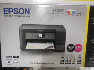 Impresora multifunción Epson ET-2750 EcoTank, ideal para imprimir, copiar y escanear. TIENE UN FALLO EL CUAL HACE QUE PIERDA TINTA, PERO POR LO DEMAS ESTA NUEVA. Conectividad Wi-Fi y Wi-Fi Direct para imprimir desde cualquier lugar. - Capacidad de 14,000 páginas en negro. - Capacidad de 5,200 páginas en color. - Tecnología de impresión sin cartuchos.