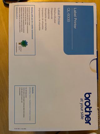 Impresora de etiquetas Brother QL-600B, ideal para organizar tu hogar o negocio. - Conexión USB. - Diseño compacto y moderno.