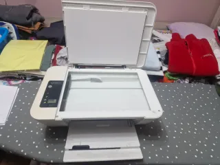 Impresora multifunción HP DeskJet 2720 en color blanco y gris. Apenas se ha usado - Diseño compacto y moderno. - Ideal para el hogar o la oficina pequeña.