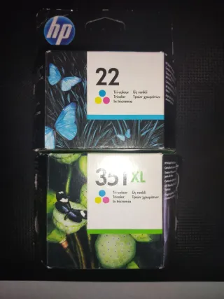 Pack de dos cartuchos de tinta tricolor HP. - Cartucho HP 22 Tricolor. - Cartucho HP 351XL Tricolor.