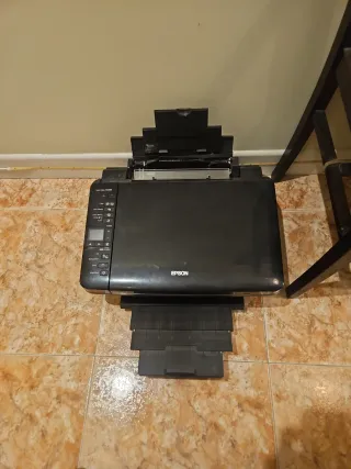 Impresora multifunción Epson SX218 en color negro. Este modelo es ideal para piezas o para quien sepa repararla. - Multifunción: imprime, escanea y copia. - Bandeja de papel extensible. - Panel de control con pantalla LCD. - No funciona