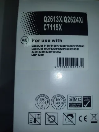 Tóner para impresoras HP LaserJet y Canon LBP. - Compatible con modelos LaserJet 1150/1150N/1300/1300N/1300XI, 1000/1200/1220/3300/3310/3320/3330/3380/1000w. - Compatible con Canon LBP 1210. - Certificado ISO 9001 y ISO 14001.