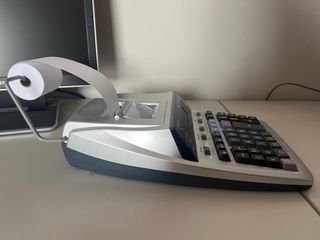 Calculadora de sobremesa Canon MP1211-LTSC-es con impresora. - Pantalla LCD. - Teclado numérico completo. - Funciones de conversión de moneda y cálculo de impuestos.
