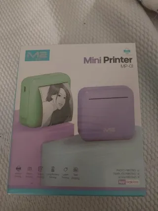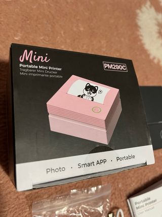 Impresora portátil para imprimir fotos y notas. - Conectividad Bluetooth. - Diseño compacto y ligero. - Incluye cable USB y manual.