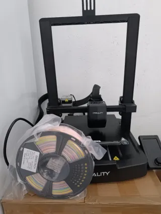 Impresora 3D Creality Ender V3 SE . Volumen de impresión 22x22x25 CM Velocidad de impresión 250mm/s ✅ Incluye 2 placas de impresión , manual, caja original ,muestra de filamento creality , algunas herramientas 🎁REGALO 1Kg PLA RAINBOW 🌈 🚨Comprada en marzo de 2025, muy poco uso, pero presenta holgura en la cama de impresion,algo muy común en estas impresoras, requiere un ajuste, por eso su precio.En impresiones altas se nota los errores, supongo que habría que ajustarle unos rodamientos. ⚠️NO NEGOCIABLE, NO REGATEOS NI CAMBIOSSS ⚠️ *ENVIO PREVIO PAGO BIZUM O PAYPAL AMIGO*📤 INPOST 13€ ENTREGA EN MANO JEREZ O PUERTO