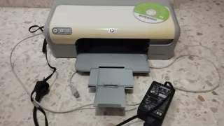 Impresora HP Deskjet D2360 con cartuchos. Tamaño compacto con bandeja extensible. Ocupa poco espacio. - Incluye dos cartuchos compatibles usados y otro de color sin abrir. - Usa cartuchos 21 y 22. Los que trae son compatibles y por tanto traen mucha más cantidad de tinta. - Cable de alimentación y cable USB incluidos. - Incluye CD de instalación original. - El plástico está un poco amarillento pero funciona perfectamente. FUNCIONA con todos los sistemas operativos hasta el Windows 10. Visita mi perfil y pregunta sin compromiso hago precio por lotes y si te llevas 3 cosas o más te haré una rebaja.