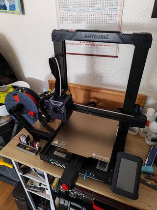 Impresora 3D de la marca Anycubic en color negro. Ideal para proyectos de impresión. - Diseño moderno y robusto. - Plataforma de impresión de alta calidad. - Se entrega con una bobina roja casi entera y sus herramientas. - Un pendrive con sus drivers ( Está nueva ya que no está muy usada )