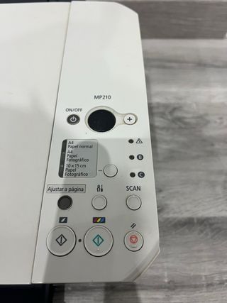 Impresora multifunción Canon Pixma MP210 en color blanco y negro. Compacta y versátil para tus necesidades de impresión. - Escanea, copia e imprime. funciona perfectamente - Viene con dos cartuchos de tinta a estrenar. Se acepta prueba