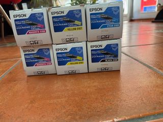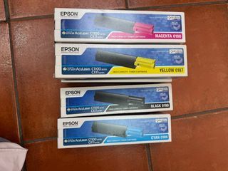 Kit de tóner de alta capacidad para impresoras Epson Aculaser C1100 y CX11. Caducados, pero funcionan perfectamente. EL Kit incluye : 2 Tóner de color amarillo 2 Tóner de colo magenta 1 Tóner de color Cyan 1 Tóner de color negro - Tóner Cyan 0189 - Tóner Black 0190 - Tóner Yellow 0187 - Tóner Magenta 0188