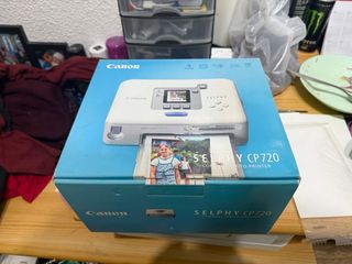 Impresora fotográfica Canon Selphy CP720. - tres paquetes nuevos de papel - nueva tinta puesta - todo su contenido