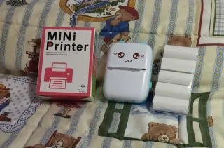 Mini impresora portátil con un diseño divertido y compacto. Ideal para imprimir de forma rápida y sencilla. - Incluye varios rollos de papel térmico. - Conexión Bluetooth para impresión inalámbrica. Esta como nueva y sin estrenar.