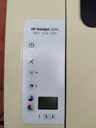 Impresora multifunción HP Deskjet 2540 (escanea, copia e imprime). Muy buen estado exterior, aunque desconozco su funcionamiento actual interno. NO incluye cables ni cartuchos. Útil para reutilizar sus piezas.