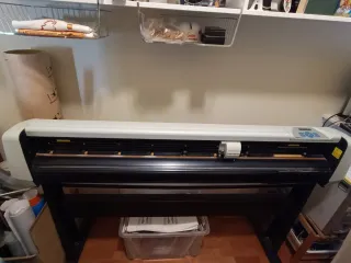 Plotter de corte Summa D120 en blanco y negro. - Ideal para trabajos de corte de vinilo. Formato de corte hasta 120 centímetros - Diseño robusto y profesional. Funciona perfectamente pero se le ha roto un rodillo de arrastre de los 3 qué tiene y hay qireponerlo. Ver fotos Se entrega con ordenador PC con programa de corte y algunos artículos cómo restos de vinilos.