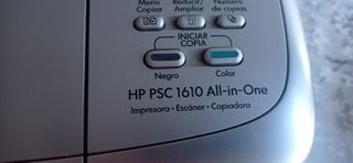Impresora, escáner y copiadora con cable HP. Se vende sin cartucho de tinta pero funciona bien.
