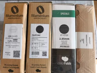 Se venden 4 rollos de filamento nuevos a estrenar de prestigiosas marcas. Para impresoras con cabezal de 2.85-3.0 mm. En tienda valen mas de 140 euros. Se vende lote, las 4 unidades a 60 euros. Especificaciones en ultima foto. Nuevos, no regateo. - Rollos de filamento Fillamentum. - Rollo de filamento ColorFabb. - Rollo de filamento NinjaTek.