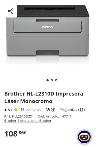 Impresora láser monocromo Brother HL-L2310D dúplex USB nueva