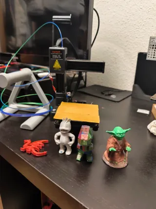Impresora 3D Creality Ender 3 en color negro y verde, con algunos extras incluidos. - Iluminación led incluye herramientas y accesorios como boquillas muelles para cama etc. - Prepada para cerramiento alejando la electrónica fuera del cerramiento para materiales mas técnicos. - También se puede montar como viene de fabrica incluye caja donde viene cuando es nueva. - Ideal para empezar a aprender y imprimir lo que quieras.