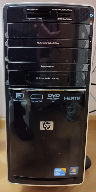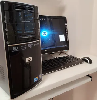 Se vende ordenador completo de sobremesa HP en color negro. Año 2009. Incluye lector de tarjetas 15 en 1 y unidad DVD HDMI. - Lector de tarjetas 15 en 1. - Unidad DVD HDMI. - Teclado y Ratón - Impresora Epson + cartuchos sin uso