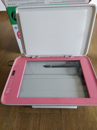 Impresora multifunción NUEVA HP DeskJet 2823e, con wifi, comprada por error el 07-02-26 porque la que tenía no funcionaba, 1 sola impresión, cartuchos recien instalados por eso no la puedo devolver, con oferta de 6 meses de impresión gratis con Instant Ink hasta abril de 2026. Imprime, copia y escanea, viene con su caja como en la foto, con accesorios y garantia. - Color rosa y blanco. - Incluye cable de alimentación.