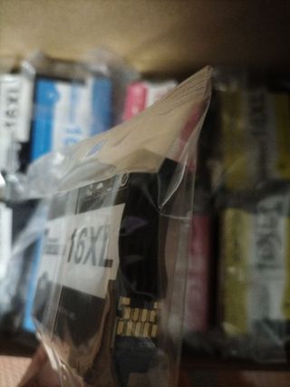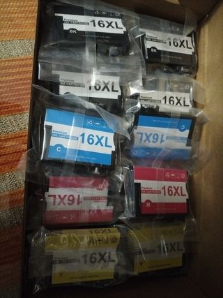 Se venden 10 cartuchos de tinta Epson 603XL. Están nuevos y sin abrir, en sus cajas originales. - Incluye 4 cartuchos negros (EI-603XLBK(P)). - Incluye 2 cartuchos cian (EI-603XLCY(P)). - Incluye 2 cartuchos magenta (EI-603XLMG(P)). - Incluye 2 cartuchos amarillo (EI-603XLYL(P)). - También se incluyen 5 cartuchos InkSpace 603XL negros y 4 cartucho InkSpace 603XL cian. InkSpace 603XL magenta 2 y 1 cartucho InkSpace 603XL amarillo