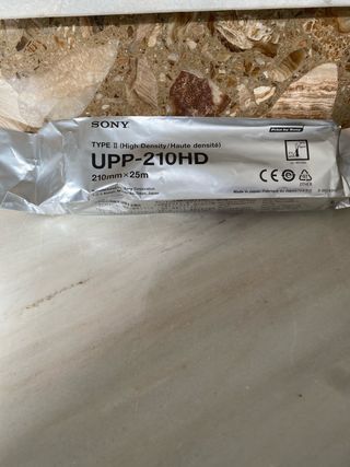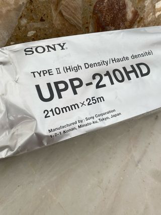 Rollo de papel térmico Sony UPP-210HD. - Tipo II (Alta Densidad). - Dimensiones: 210mm x 25m. Rollo blanco y negro Sony original UPP 210 HD (High Density) Soporte de impresión de alta densidad para impresoras blanco y negro de gran formato SONY: UP960 UP970AD UP980 UP990AD