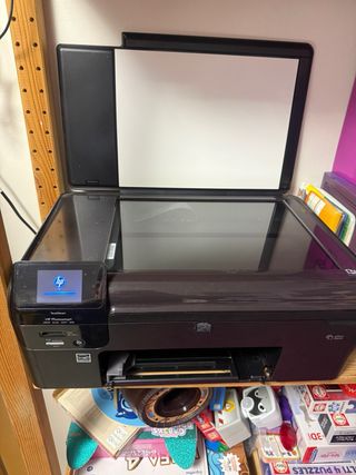 Impresora multifunción HP con conectividad wifi. - Escanea, copia e imprime. - Pantalla táctil para fácil manejo. - Solo rota una patilla de la tapa no afectada al funcionamiento. - Funciona bien con cartuchos compatibles entrego con color negro, azul,amarillo falta rosa