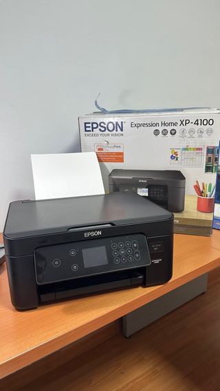 Impresora multifunción Epson XP-4100 en color negro. Ideal para el hogar o la oficina. - Diseño compacto y moderno. - Panel de control interactivo de 6.1“”. - Escáner láser para documentos y fotos. - Funciona con wifi sin necesidad de estar conectada al ordenador. - Imprime a 2 caras. - Imprime desde el móvil.