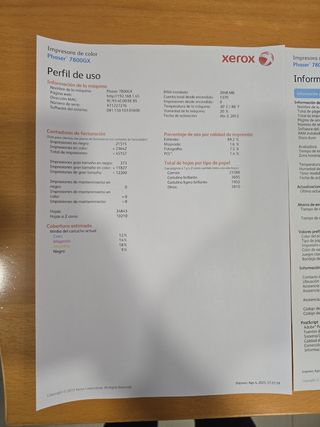 Impresora multifunción Xerox Phaser 7800 en buen estado. Es una impresora de gran tamaño, ideal para oficina. - Incluye bandeja para papel, hasa A3. - Dispone de varios cajones para almacenar papel. - Se encuentra en perfectas condiciones estéticas.