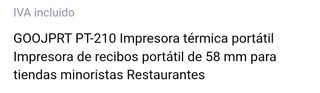 Impresora térmica portátil GOOJPRT PT-210 en buen estado. Es una impresora de recibos portátil de 58 mm, ideal para tiendas minoristas o restaurantes. - Impresión térmica. - Modelo PT-210. - Tamaño de impresión: 58 mm.