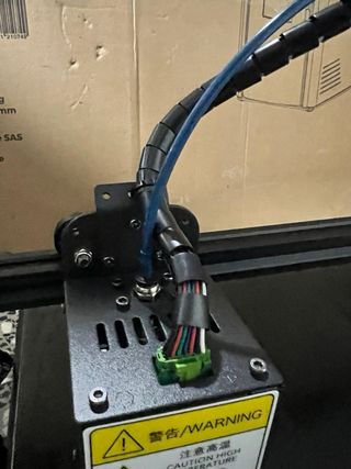 Impresora 3D Artillery Genius en color negro y azul. Diseñada para la impresión de modelos tridimensionales. Mejoras : Firmware Marlin 2, Oruga para cableado cama lateral, extensor en soporte rodillo, lamina cama, sensor 3D Touch para nivelacion automática. Funciona perfectamente, cambio por sustitución a otro equipo - Plataforma de impresión metálica. - Estructura robusta con soportes verticales negros. - Panel de control integrado en la base.