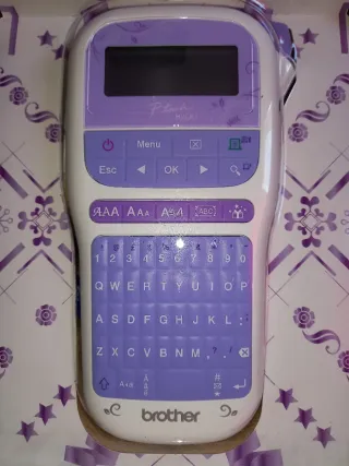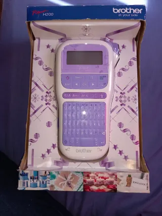Impresora de etiquetas Brother P-touch H200 en color blanco y morado. Ideal para organizar tu hogar o negocio. Imprime tanto en etiquetas de tela como en etiquetas papel - Diseño compacto y ligero. - Pantalla LCD para previsualizar texto. - Teclado QWERTY para fácil escritura. - Tiene incluso plantillas com diseños listos para imprimir. Esta en perfecto estado complemente nueva solo se ha usado 2 veces