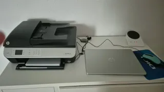 Impresora HP OfficeJet 4632 en color negro. - Funciones de impresión, fax, escaneo y copia. Se vende por no usar de regalo un teclado.