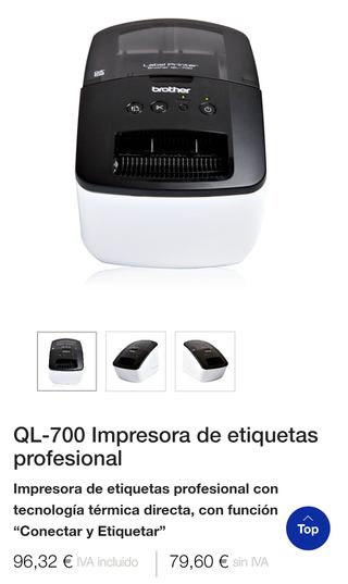 ¡Ha tenido uso particular! QL-700 Impresora de etiquetas profesional Velocidad de impresión de hasta 93 etiquetas por minuto. Impresión de códigos de barras Conexión a base de datos Impresión de logotipos e imágenes Corte de cinta automático Ancho máximo de etiqueta de 62 mm QL700 Descripción del producto Impresora de etiquetas profesional con tecnología térmica directa, con función “Conectar y Etiquetar”. Impresión de hasta 93 etiquetas por minuto sin desperdiciar ni una sola etiqueta, corte automático y conexión a base de datos.