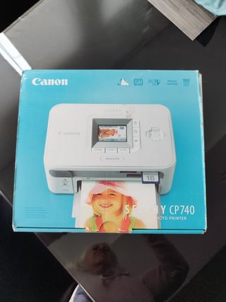 Impresora de fotos Canon Selphy CP740, en su caja original. Parece estar en excelentes condiciones. - Imprime fotos de forma compacta y sencilla. - Ideal para imprimir fotos desde tarjetas de memoria. - Incluye 16 hojas de papel fotográfico.