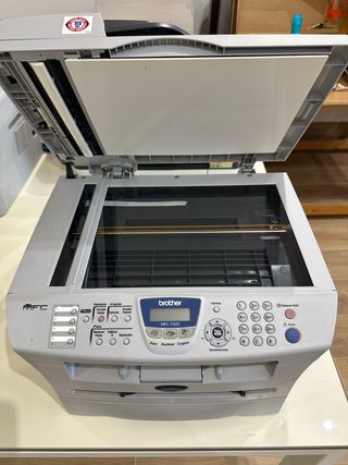 Impresora multifunción Brother MFC-7420 en color gris y blanco. Ideal para tu hogar u oficina. - Funciones de impresora, copiadora y fax. - Escáner integrado. - Panel de control con pantalla LCD.
