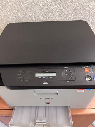 Impresora Color láser multifunción Samsung CLX-3305, en perfecto estado. Ideal para tu hogar u oficina. - Imprime, escanea y copia. - Diseño compacto y moderno. - Bandeja de papel extraíble. Avisa que falta toner amarillo. Ver foto. Negociable