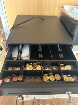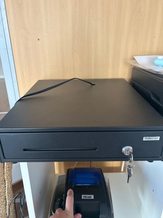 Vendo caja registradora Safescan en perfecto estado. Incluye una impresora de tickets. - Cajón negro, con llave. - Impresora de tickets HOIN, azul. - Perfecta para negocios pequeños.