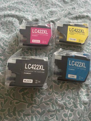 Pack de cartuchos de tinta compatibles LC422XL. - Tinta pigmentada. - Colores: Magenta, Amarillo, Negro, Cyan. - XL (alta capacidad).