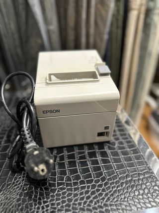 Impresora térmica Epson TM-T20 en color beige y blanco. Ideal para negocios. - Diseño compacto. - Fácil de usar.