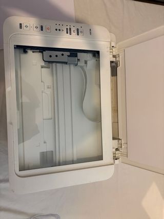 Funciona escáner perfectamente pero a la hora de imprimir no traga el papel. Probablemente hay que limpiar rodillos. Va incluido cable 4 cartuchos compatibles, un paquete completo de folios para fotos y otro paquete completo de papel foto 10x15. Hago envío