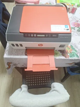 Impresora multifunción HP Smart Tank Plus 505 en color gris y naranja. Ideal para el hogar o la oficina. La impresora imprime más lento color negro y imprime más color rosado no se configurarlo mi hijo me compro otro esta en buen estado repito no se configurar - Escanea, copia e imprime. - Conectividad Wi-Fi. - Bandeja de entrada para papel.