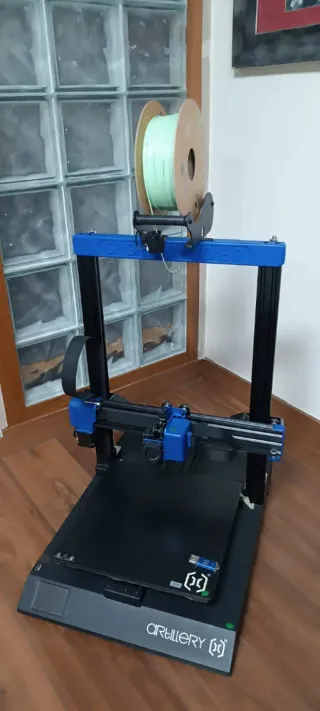 Especificaciones: Impresora: Artillery Sidewinder X2 Volumen de impresión (mm) 300x300x400 Volumen total de la impresora (mm): 550x405x870 Impresora abierta, tipo bedslinger/cartesiana. Nozzle tipo volcano de 0.4 mm de latón Cama de vidrio templado Hot end cambiado y motores z también. Perfectas condiciones Calibración automática Capacidad de impresión de PLA, PETG y TPU Velocidad máxima de impresión: 150 mm/s Temperatura máxima cama: 80°C Temperatura máxima boquilla: 240°C Detector de filamento Soporte para bobinas de cualquier tipo. Todos los elementos originales incluidos. SE ESCUCHAN OFERTAS.