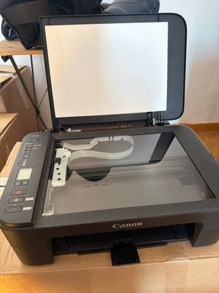 Impresora Canon en buen estado. Escanea documentos de hasta 18.5x11 pulgadas. - Funciona correctamente. - Diseño elegante en tonos grises y blancos.