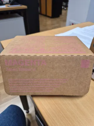 Tóner Ricoh color magenta, modelo DSC328. - Nuevo y sin estrenar. - Peso: 275g / 9.70oz. - Fabricado en Japón, embotellado en el Reino Unido.
