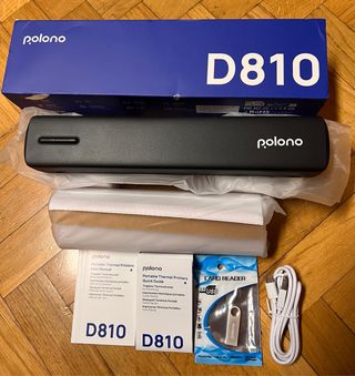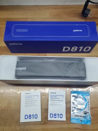 Nuevo y sin abrir El precio no es negociable. Impresora térmica portátil Polono D810 en color negro. Incluye manual de usuario, guía rápida, lector de tarjetas USB y cable. Sin tinta y respetuoso con el medio ambiente: tecnología de impresión térmica directa, no necesita cartuchos de tinta. Imprime en papel térmico y papel para plantillas de tatuajes. Incluye: 20 hojas US Letter (coloca las marcas negras hacia abajo) Compatibilidad completa: Inalámbrica para iOS/Android (a través de la aplicación "Labelnize" y Bluetooth) y PC (Windows/Mac a través del controlador USB). Conexión fácil, sin configuraciones complicadas